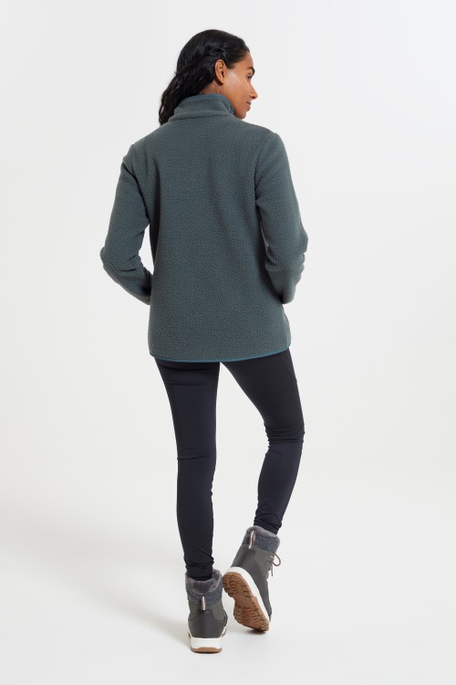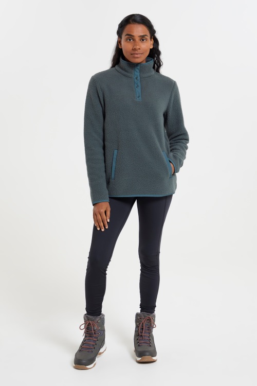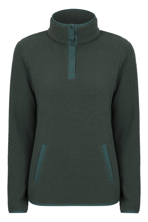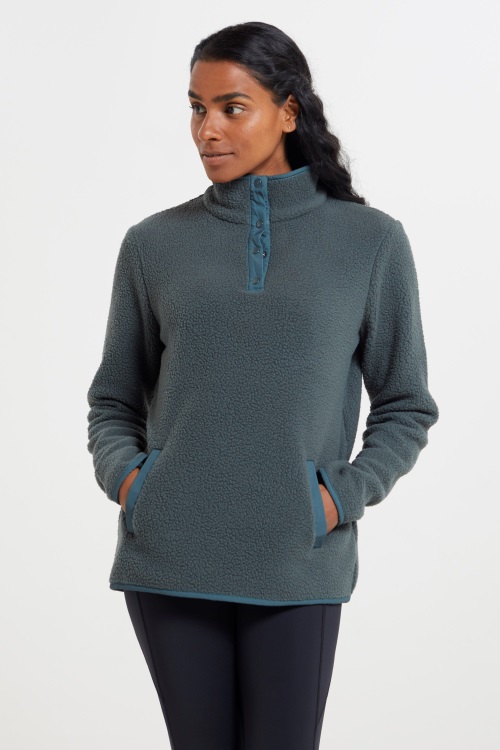Fleeceul Nostru Pentru Femei Reciclat Pentru Gât Cu Nasturi Este Confortabil și Moale. Confecționată Din Fleece Pufos în Stil Sherpa Reciclat, Această Hanoră De Damă Are Un Tiv Curbat și O închidere Cu Fermoar Reglabil - Un Design Cald și Versatil Pentru Activități De Intensitate Scăzută Sau Pentru A Vă Relaxa Acasă - O Alternativă Durabilă La Stratificarea Tradițională De Mijloc.
