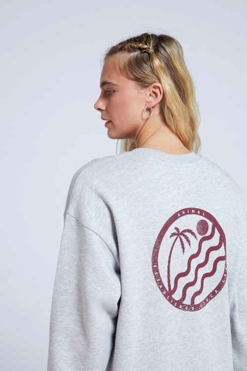 Pune și Du-te, Rochia Pulover Pentru Femei Cia Animal Este Un Casual Confortabil. Fabricat Din Bumbac Organic Pentru Un Finisaj Moale, Este Conceput într-o Potrivire Obișnuită Pentru Libertate De Mișcare. Finisat Cu Manșete Cu Coaste, Este Decorat Cu Un Imprimeu Unic De Palmier Apus De Soare - Un Clasic Atemporal Al Mareelor.