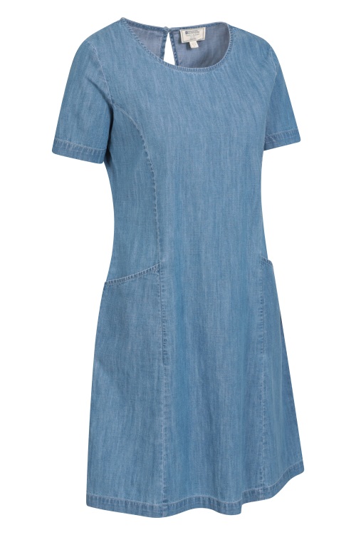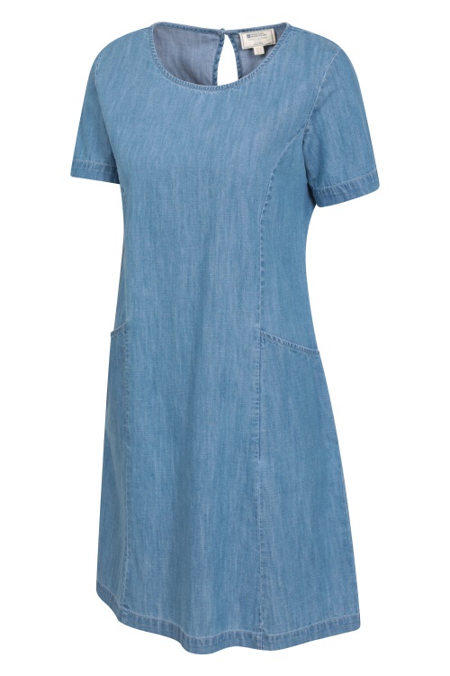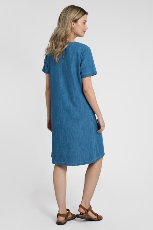 Intră în Vară Cu Stil Cu Rochia Din Denim Flora. Compoziție 100% Bumbac, Făcând-o Natural Ușoară și Respirabilă, într-o Potrivire Relaxată, Cu Un Decolteu în Picioare și O Acoperire Suplimentară Datorită Protecției UV.