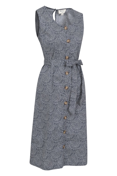 Colorată și Confortabilă, Rochia Noastră De Soare Cu Imprimeu Pentru Femei Maui Este Realizată Din Bumbac Ușor și Decorată Cu Un Model Floral Atrăgător. Proiectat Cu O închidere Frontală Cu Nasturi și Talie Reglabilă, Este Ideal Pentru Explorarea Verii.