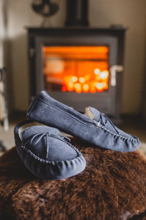 Papuci Mocasin Barbati De Origine Bleumarin Din Piele De Oaie Depozit Montan